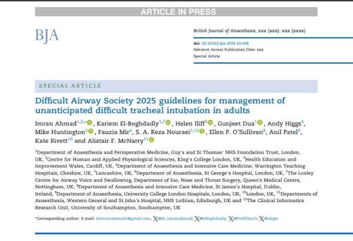 Descarga el resumen de los principales cambios de las Guías DAS 2025 para el manejo de la vía aérea difícil imprevista en adultos. Este documento sintetiza las actualizaciones clave, el nuevo enfoque en oxigenación continua, videolaringoscopia y toma de decisiones temprana, facilitando su aplicación en la práctica clínica diaria.