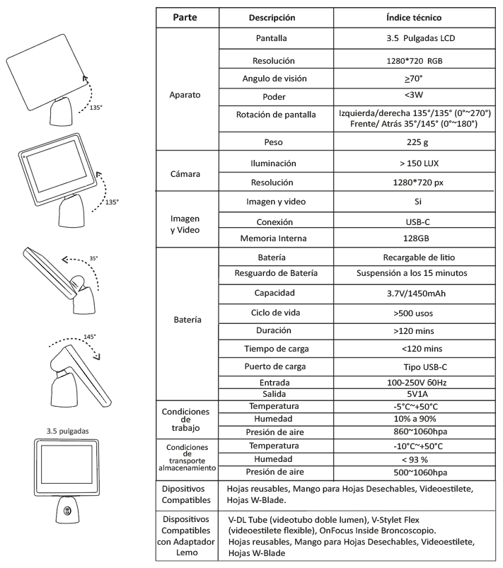 - 1 Mango Videoestilete con adaptador para toma de oxígeno