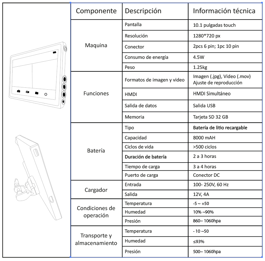 - 1 Pantalla 10.1" Touch Captura foto y vídeo, visualiza 2 dispositivos de forma simultánea
